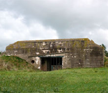 The casemates standing in the center of the field are Mare-Fontaine Battery. This battery of 105 mm guns was overrun on D-Day by the Green Howard's, after having been first bombed, then shelled by HMS Belfast.