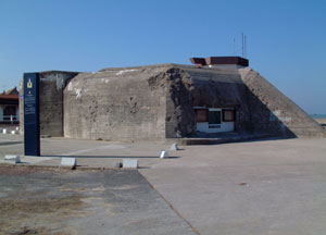 You are now at Le Hamel, on Jig sector, Gold Beach, which was assaulted by the 231st British Infantry Brigade (1st battalions of the Hampshire and Dorset regiments). The 1st Hampshire took the brunt of the fire from the 88-mm gun in this blockhouse. The attack was spearheaded by four Crabs which flailed their way through the minefields behind the beach. Three of the tanks were destroyed; the fourth made a wild charge through the village before it was knocked out According to the plaque on the blockhouse, the Germans manning this 88-mm accounted for a total of six British tanks. Although several German strong points held out through the afternoon, the Hampshires quickly worked their way around Le Hamel and began their advance inland.