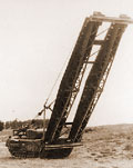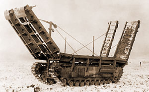 An important role for the AVRE in Normandy was as a carrier/launcher for the Small Box Girder (SBG) assault bridge. These bridges were placed against sea walls to enable them to be surmounted by armoured vehicles, or placed over shell or bomb craters and over anti-tank ditches and natural obstacles such as watercourses.