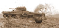 This tank saw its first action in North Africa; however D-day would be the first operation in which it would be used on a large scale. The idea for this tank cam forms the South African major A.S. du Toit. The crab was a normal Sherman tank with the one exception that it had a large drum in front of it with chains attached to the drum. The tank driver could spin the drum, so that the chains would bang on the ground in front of the tank. These chains would explode any mines that might be their on a safe distance in front of the tank. The tank could clear a safe passage through a minefield of 9 ft wide. On the back sides were 2 containers filled up with chalk powder in order to give the soldiers the limits of the cleared path.