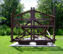 Other logs (tree trunks) faced back toward the land forming a ramp with metal teeth to wreck the landing craft.