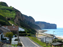 Coy B, 743rd Tank Bn landed directly in front of the draw, D-1 Exit. They suffered heavily from artillery fire. The LCT carrying the commanding Coy was sunk and 4 other officers were killed or wounded, leaving one lieutenant in Coy B. 8 of 16 tanks landed and fired from the water edge; Coy A and C, 743rd Tank Bn landed east of Vierville-sur-Mer well spaced intervals without initial losses Dog white to Easy Green). Coy C, 2nd Ranger Bn landed on Charlie western end of Omaha at H+ 15. Ranger Coy consisted of 65 men. An antitank gun bracketed and hit Cpt Goranson's LCA, killing 12 men. Another 15 Rangers were KIA and WIA by a machine gun when they were getting out their craft. Rapidly they gathered at the cliff base and realize that they couldn't scale it from their position. 1st Lieutenant Moody with 3 others moved further west, three hundred yards, and discovered a crevice which they could climb using their bayonets for handholds. 1st Lieutenant William D. Moody had brought along four toggle ropes that he attached to stakes in a minefield just below the crest. With another Ranger they moved along the cliff until they were over Coy C. They shouted down to men below the rope location. At 07.30 am Coy C made it to the top and assault the fortified house on the cliff top, the house does not exist anymore. They had lost 35 men. From the top, Cpt Goranson saw a secton of Coy B 116th and send a man to guide them to the ropes. Their first objective was to secure the fortified house and the bunkers at Pointe de la Percée.