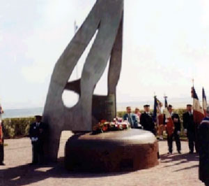 The turret now serves as the base for a modern metal sculpture resembling a flame. As you climb the dune to the turret there are small stone markers inscribed with the names of French commandos who fell on D Day.