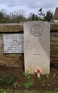 Lt. Den Brotheridge, British Airborne Forces, was killed by a friendly shot on D-Day, capturing Pegasus Bridge. He lies in the civil cemetery of Ranville church. Note the tribute from the owners of Cafe Gondree the first home in France to be liberated on D-Day.